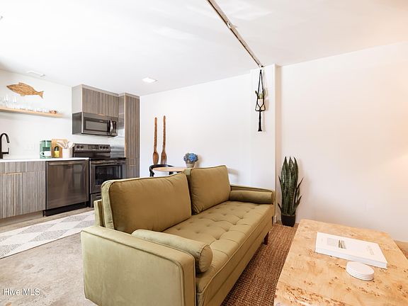 Available immediately! Step into this private urban getaway in the heart of Wilmington's vibrant Cargo District! A modern converted shipping container offers a one-of-a-kind experience, blending industrial charm and modern finishes. The location can't be beat! Centrally located in a private community close to midtown, downtown, ILM Airport, and only 15 minutes to the beach. Walk outside your front door and step into all that the Cargo District has to offer! Indoor Space: Downstairs, you will find the open concept living area and full kitchen complete with dishwasher, stove, and plenty of storage. Up the stairs, relax in coastal comfort with a built in Queen size bed as well as a full bathroom. Enjoy a walk-in closet with washer/dryer conveniently located in the bedroom closet, and enjoy an outdoor balcony with room for seating. Outdoor Space: Private upstairs patio, ideal for morning coffee or evening relaxation. Additional seating nook located just inside for the days you want to enjoy the sun but not the heat! Parking: There is a designated free parking space for one car per unit and additional free street parking along Queen street. Utilities: Water/trash are included. Property is AT&T Fiber capable!