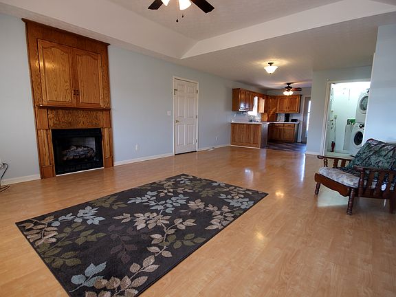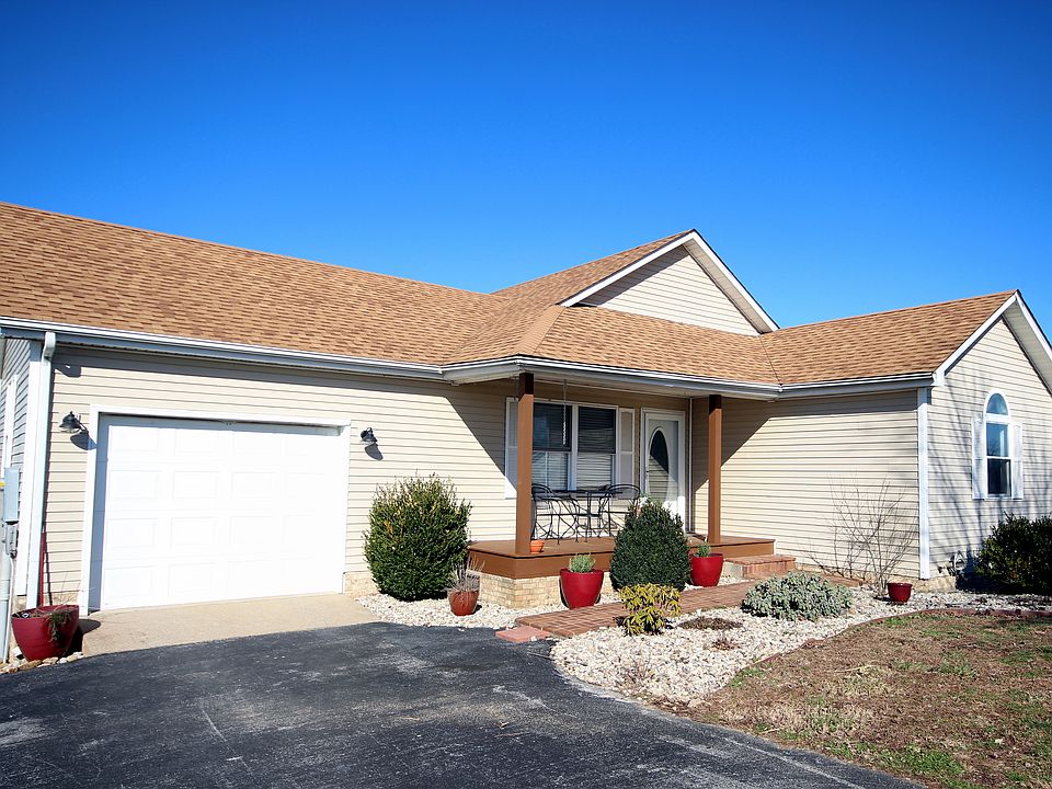 Cute as a button! This home features 3 bedrooms, 2 full baths, huge living room & attached garage. The living room and the master bedroom have angled tray ceilings. There is a storage building included and a huge deck and country views, but minutes to town.