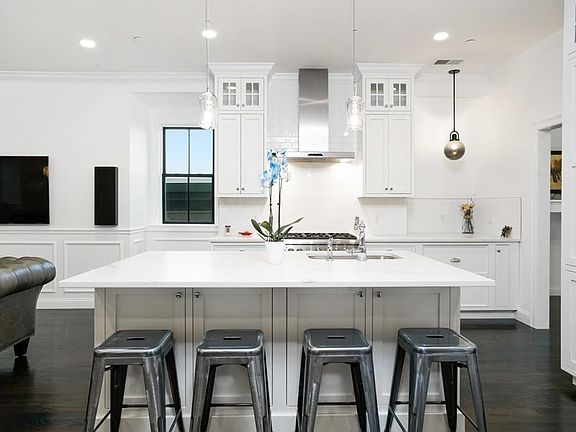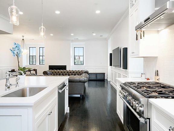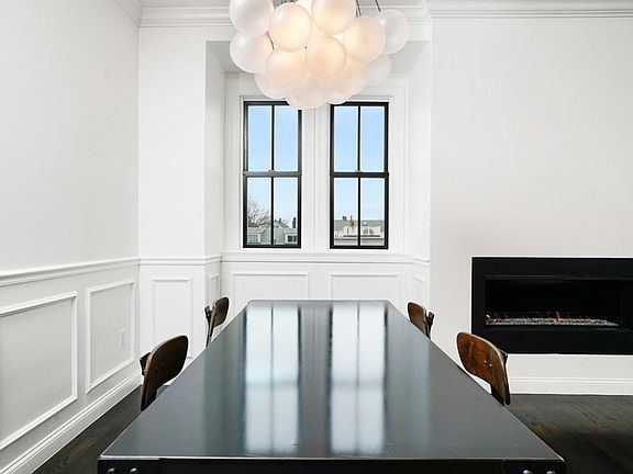 The James Collins Mansion is a 1868 Second Empire dwelling that has been transformed into the ultimate in modern living at City Point. Unit 6 is situated on the top floor of the main house with direct elevator access, a six room masterpiece to say the least. Three bedrooms in all, with two full baths, an office, massive deck for entertaining, along with a private interior catwalk with roof rights. This wonder is finished in white with the Fine Paints of Europe, and comes with deeded garage parking, and storage. By appointment.