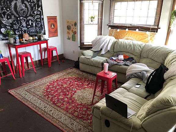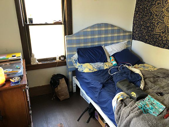 Five bedroom, two bath house near bus line with free off-street parking. Main floor has kitchen, living room, porch and two bedrooms. Lower level has bedroom, bathroom and laundry room. Second floor has two bedrooms and a bathroom. Newer roof. 360 day lease.