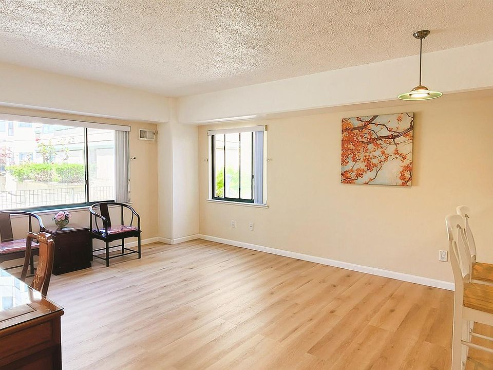 Largest 1br 1ba floorplan in Pacific Renaissance Plaza with 691 sq ft situated on the 3rd Floor unit on the Courtyard level. In addition, it has an additional window facing East with morning sun. Perfect for the first time, or a downsized family. Comes with 1 deeded parking and 2 mins walk to 12th St BART makes this the perfect commuter location to SF downtown. This condo features newer cabinets, granite countertop, newer appliances, new paint, new baseboards, new SPC Waterproof hard wood flooring. Porcelain tiles line the walls and floors in the kitchen and bathroom. Large living room, large bathroom and close to the elevator make this a functional floorplan. HOA includes 1 deeded garage parking, secured entry, hot/cold water, sewer and garbage, 24/7 onsite patrol security, onsite property management and building maintenance. The buyer pays only for PG&E electricity. The ground floor features top rated restaurants, clinics, pharmacies, banks, libraries and public garage parking. Perfect for investment, downsize family or first-time starter home. Google Fiber is available in this building. Only 2 units are 691 sq ft in this building.