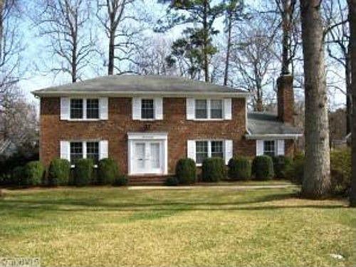 Striking traditional two story brick home in Grimsley district. Hardwoods throughout most of home (under carpet in living room and 2/3 of dining room). Den with built in book cases and woodburning fireplace, with french doors to sunroom leading to patio, and private back yard. Sitting area in master bedroom. Replacement windows! In the heart of Greensboro, walk to Friendly Center. Ask about allowances for decorating upgrades.