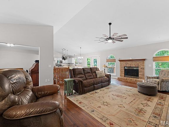 THIS IS THE 3-Car RANCH FLOORPLAN YOU'VE BEEN WAITING FOR! 3 Bedroom + 2 Baths= A LOT TO LOVE! Over 1,720 sq ft of Finished Living Space on a .29 acre Cul-de-Sac Lot with TREES! Wentzville LIBERTY Schools! VAULTED Ceilings throughout Main Living Areas! Beautiful Hardwood & Handscraped Wood Plank Floors thru out Main Level! Front Room perfect for Office or Dining! Great Room w/ Gas Fireplace with Brick Surround & Wood Mantle flanked with 2 Full View Palladian Windows & Designer Ceiling Fan & Light. Enjoy the views from the HUGE Cedar Deck with Open & Covered areas- perfect for relaxing & grilling! OPEN Kitchen w/ Wood Cabinets, Island, NEWER Graphite SS Appliances. Breakfast Room with Bay Window! Owners Suite with WalkIn Closet! UPDATED 2025 Owners Bath w/ 6x12 Tile Floor, Adult Height 2 Sink Vanity, Linen, Soaking Tub & StepIn Shower! Bed #2 & #3 share a Full Bath. Main Floor Laundry with Shelving & HUGE Pantry Closet! Wood Spindle Stairs leads to the Lower Level featuring Windows, Full Glass French Doors, Hobby Room with Electric & Utility Sink & lots of Storage. Fully Fenced Backyard features Stamped Patio, Designer Stone Accent Wall, Landscaping Wall & Gardens! 3 Car 25’ Deep Garage with Man Door, Workbench, Cabinets & addl Electric. Carpet- 2025. Black Exterior Windows, Extra Wide Concrete Driveway & Designer Wood Look Garage Doors-2024! In the desirable Villages of Bainbridge Neighborhood with POOL & Walking Paths & direct path to walk Inverness too! A MUST SEE!