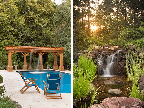 Private, wooded magnificence on prestigious Hobson Rd! 800' of wrought iron fencing surround the property. The spectacular wooded lot borders a 14-acre forest preserve. Mature perennial gardens, waterfalls + English gardens lead visitors on stone pathways to a resort-style private backyard, swimming pool with cascading waterfall, hot tub, pergolas, heated outdoor chefs kitchen + entertaining area an absolute outdoor paradise! Fully renovated + high quality finishes. 5 bedrooms, 4 full baths, and 2 powder rooms. Entertain inside + out on three levels with approx. 8,000+/- square feet! A Chef's Kitchen! The home features two kitchens + six ovens! (WOLF, VIKING, PRIMO, MUGNAINI, TURBO CHEF, GAGGENAU) The sun-filled kitchen w/skylights and large windows galore offer views of waterfalls, trees + wildlife. Featuring an expansive 13 ft island with exotic hardwood counter-top + 2nd prep sink. 2 dishwashers, 2 fridge/freezers, plus 2 refrigerator drawers! Other kitchen reno details include a pass through window between the family room + kitchen for easy entertaining, white oak hardwood wide-plank floors, granite counters, 2 larders for food + dish storage, and museum quality recessed lighting fixtures. French doors lead to the covered outdoor kitchen + party space. The family, library + breakfast room all integrate with the 2 kitchens for ease of entertaining. The outdoor heated kitchen compliments the ultimate Chef's kitchen! A party area, grilling + cooking stone island overlook the backyard pool. The outdoor kitchen features a gas oven, built-in Viking grill w/side sear burner, smoke drawer + rotisserie, high BTU Wok burner, PRIMO charcoal grill for precise grilling/smoking, wood burning fireplace, + authentic MUGNAINI Italian Wood Fired Pizza Oven (cooks 2-3 pizzas at a time.) Relax in privacy in the hot tub or under the Pergola overlooking the pool with cascading waterfall, perennial gardens, pines + forest. The lower level offers 2,147 sq ft remodeled, finished space. Impressive European-style brick wine cellar with slate floor, old-world design, stucco walls has capacity for >800 bottles and state of the art technology including Euro-Cave chiller + remote control temp option. A full bath, theater/media, professional bartenders bar, poker card room, game room, 500-gal reef tank and 5th bed/office/exercise rm complete the lower level entertainment space. More Details + Full Photo Tour www.millermillerrealestate.com