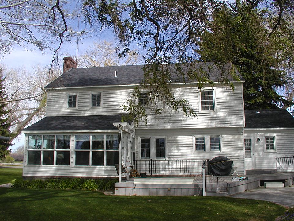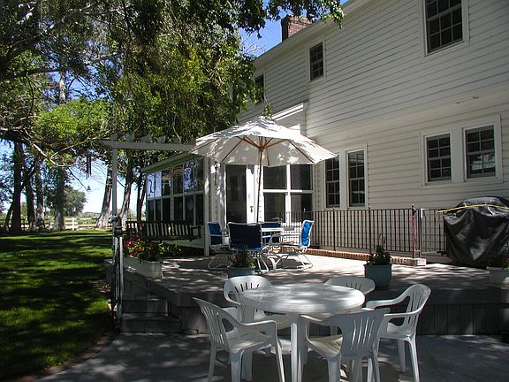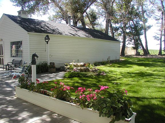 LOCATION - - LOCATION - - LOCATION!! If you like country living surrounded by farm land but with easy access to town -- this is the ideal place for you. Besides that add a classic colonial home sitting on 2 1/2 acres which are beautifully landscaped. The large grass area surrounded by tall trees has an automatic sprinkler system. From the large deck and cement patio the sound of a trickling stream can be heard from a small tri-level pool with waterfall. The yard feels like a park. It has 2 wells - one serves house -- the other the yard. The heated shop (1,872 sq. ft.) with office (576 sq.ft.) as well as the house both have new roofs (May, 2016) The house exudes charm of the past but has upgraded dual pane windows and updated kitchen with granite counters and updated bathrooms, plus hardwood/tile floors, fireplace, window coverings full basement and full attic, an on-demand water heater and furnace (2013). Additional out-buildings include a 2-bay pole barn, a couple tack sheds and loafing barn and a garden shed; plus some fencing. COME SEE (by appointment call 307 754-5088) IT'S UNIQUE AND CHARMING.