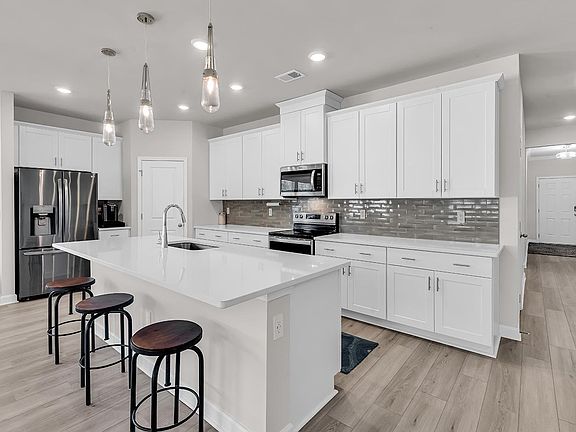 - Features: Breakfast Bar, Kitchen Island, Pantry, Stainless Steel Appliances, Solid Surface Counters