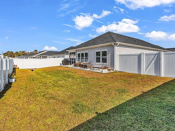 Recently built in 2024, this modern coastal home in Creekside Point, Little River, South Carolina offers exceptional privacy, convenience, and energy-efficient living just minutes from North Myrtle Beach. Situated in one of Little River’s most desirable new communities, this home features an open-concept floor plan that flows seamlessly from the spacious living area to a screened porch and extended patio—perfect for entertaining or relaxing after a day on the coast. Inside, thoughtful upgrades include energy-efficient construction, upgraded lighting fixtures, custom pull-out kitchen drawers, a built-in mudroom with cubbies, and custom-designed closets for optimal organization. The private owner’s suite offers a large walk-in closet, spa-style shower, and a direct walk-through connection to the laundry room. Secondary bedrooms share a well-appointed Jack-and-Jill bathroom with dual sinks. A standout feature is the fully privacy-fenced backyard on an oversized corner lot—ideal for pets, play, gatherings, gardening, or quiet evenings outdoors. Enhanced landscaping and decorative curbscapes add curb appeal. This home also includes a two-car garage for secure parking and storage, plus a whole-house security system already installed with sensors on all windows and doors for peace of mind the day you move in. Creekside Point offers residents a community pool, cabana, oversized homesites, and walkable streets—close to the Little River Waterfront, marinas, golf courses, restaurants, shopping, and the beautiful beaches of North Myrtle Beach. With its modern design, coastal location, fenced yard, and upgraded security, this home captures the lifestyle so many buyers look for in the Grand Strand.