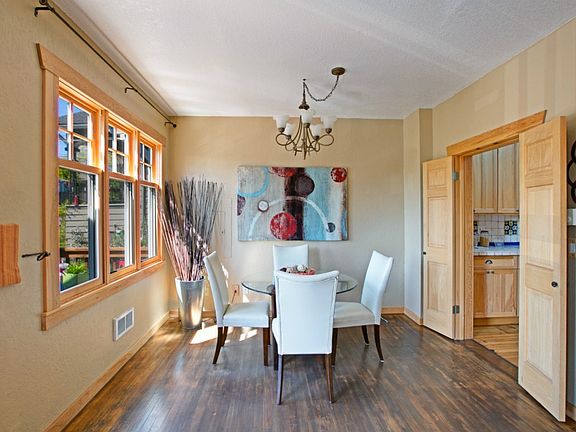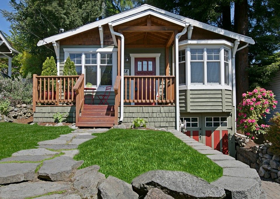 Remodeled & charming Greenlake craftsman, perched high above the street! Fabulous kitchen boasts hickory cabinets, custom tile, stainless steel appliances/gas range, vaulted ceiling w/huge skylight, and spacious eating area! Both bathrooms bright & updated. Other recent updates include plumbing, roof, windows, insulation, heating, siding, and driveway! Spacious master bedroom on main floor, and 2nd spacious bedroom in basement. HUGE heated workshop area/garage in basement. Move in ready!
