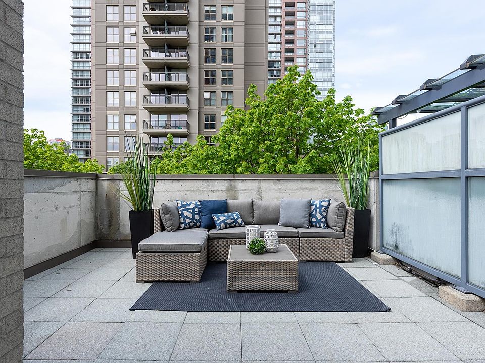 Your Private Patio Oasis awaits you with this 385 square foot Private Rooftop Patio! An entertainer's dream great for hosting BBQs, gardening, relaxing and soaking up the sun on summer days. Fantastic Yaletown location with shops, restaurants, transit and entertainment at your door steps. Unique two level 1 bedroom suite at the Savoy, perfect for an investing or living. Bright open layout with 9' ceiling, gas fireplace and laminate flooring. Well-equipped building amenities including gym, indoor pool, hot tub, sauna, party room and guest suite. 1 Parking. 1 Storage. Pets & Rentals Allowed. Ready for your to move into today!