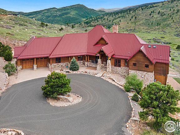 Located an hour north of Denver, at the end of a private road, this beautiful custom home on 39 acres has over 6,763 Total square feet of pure luxury. Just two miles south of Carter Lake Reservoir with Rabbit Mountain Open Space and Longs Peak as its backdrop, built to entertain, this home features a large deck, front and rear patios, fire pit, hot tub, wet bar, theatre room, Control 4 AV system throughout the entire home, guest suite with a private entrance, and a circle drive complete with an oversized 3 car pull-through garage that's big enough to fit everybody. In addition to that, this home features a spacious kitchen with huge islands, multiple ovens, dishwashers, a butler pantry, and more! In the primary room, you'll find a personal fireplace, two oversized walk-in closets, a steam room, private laundry hookups, and a beautiful jet tub overlooking the valley. The other 4 bedrooms and 3 baths make this house perfect for any family or function. Drink your morning coffee while sitting in the included hot tub or catch an evening beverage under the enclosed back patio while grilling up dinner on the built in grille. Work from home in your own office, which has a built-in desk and shelving, while watching the many deer, elk, and turkeys that roam the hillside. The property also features a massive 3,500 sq ft shop with three 14 ft doors, concrete floors and propane heat. The exterior of the home is landscaped with natural stone, a waterfall feature, and multiple pine trees to complete the rustic, yet elegant, look of this beautiful property. Hike, hunt, ride ATV's or shoot on your own land. And if 39 acres isn't enough, seller has another adjoining 35 acre parcel that could be purchased. Pictures just don't do this property justice, come take a look for yourself today.