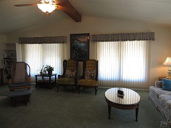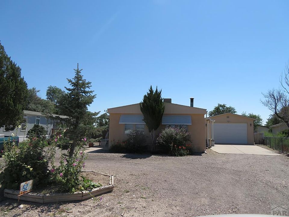 NICE MANUFACURED HOME WITH STUCCO EXTERIOR SITTING ON A GOOD SIZE LOT WITH ROOM FOR YOUR RV OR RECREATIONAL VEHICLES, CIRCLE DRIVE, EXTERIOR AWNINGS, FRONT AND BACK COVERED PORCHES, MOUNTAIN VIEW, LOW MAINTENANCE LANDSCAPING, RAISED GARDEN/FLOWER BEDS, DOGGY DOOR, SHED, CLOTHES LINE, 2 KITCHEN PANTRY'S, BREAKFAST BAR, GAS STOVE, FORMAL DINING, WALK-IN SHOWER AND CLOSET, TILE BATH & SHOWER, NEWER WATER LINE, AND AMAZING 20X30 HEATED GARAGE WITH 10 FT CEILINGS AND IT'S ELECTRIC PANEL. FIRE HYDRANT RIGHT NEXT TO THE PROPERTY COULD SAVE ON HOMEOWNERS INSURANCE.