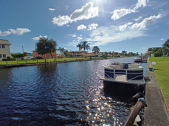 Welcome to easy, first-floor living in this GULF ACCESS condo in Cape Coral! Located just steps from downtown, you'll enjoy easy access to local restaurants, casual nightlife, and city events like the annual Red, White & Boom and, farmers market, and Bike Nights throughout the year. This well-maintained unit features newly installed vinyl plank flooring and fresh paint for a clean, comfortable space. With Gulf access and only one bridge, you'll have a direct path to the world-renowned beaches of Sanibel Island, Fort Myers Beach, Captiva, and more. After a day of coastal adventures, relax on your private lanai or by the community pool. This condo offers the ideal blend of location, convenience, and waterfront living. Easy to show, so set up your appointment today.