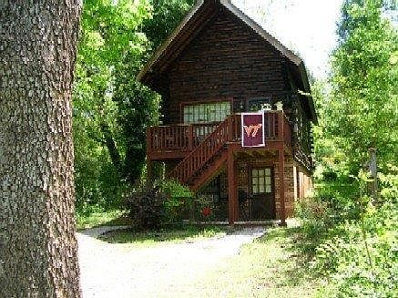 Beautiful three bedroom log home in park like setting . The first floor has a large bedroom with a private entrance and a deck with an outside storage closet. This floor also has a full bath, a potential kitchenette {space finished but no cabinets yet installed} ; a closet and a large laundry/storage area. The second floor has a covered front porch; a den with hardwood flooring and a partial cathedral ceiling; a large full bath; and nice sized kitchen with ample cabinets and a dining area. The kitchen opens onto a delightful screened porch that looks out onto a landscaped backyard with a garden swing. The third floor has a large bedroom with pine flooring and a sleeping loft that works well as an office. Each floor has its own high efficiency heating/cooling system which allows for separate temperature settings in each area. New high efficiency windows recently installed. This home is set back from the street with ample parking. It is across the street from a park and is a short hike/bike ride to the Downtown Mall and McIntire Park .It is connected for Ting Internet. It has quick access to the interstate and to Rt. 29 north of town. No smoking. Available September 1,2021
