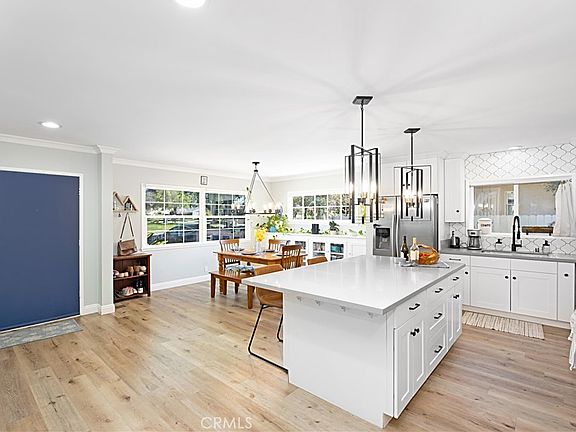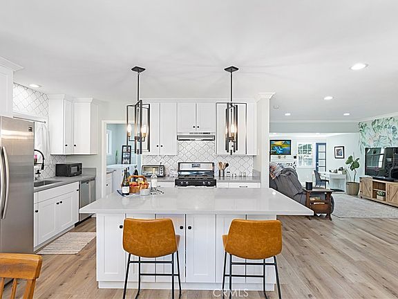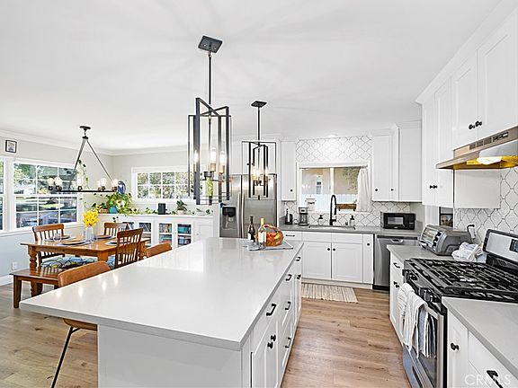 Back on market! You now have another opportunity to get into this fantastic upgraded West Floral Park home. With the perfect combination of modern features and traditional style, it has an open floorplan, extremely rare finished basement, multiple living areas and one of the best lots in the area with a large yard, hidden garden and oversized detached garage. The kitchen features a large island with bar seating, stainless steel appliances and an abundance of light that transitions into the open dining area and living room. The front family room is truly special with a large picture window facing the beautiful neighborhood setting and creating a cozy atmosphere around the fireplace for relaxing and entertaining. The master bedroom is light and bright with a barn door to the large master bathroom with glass panel enclosure rain shower and dual sinks. The second and third bedrooms are all filled with light and radiate the comforts of home that permeate this property. And don't forget about the finished basement with approximately 170 sq.ft. of finished space to enjoy for whatever purpose you choose! The yard is framed by some of the best trees in the neighborhood providing shade all year round to enjoy the large lot, relax on the back patio or garden in the planter beds with an automatic drip system already installed. Lastly, the oversized two-car detached garage sits at the end of a long driveway and offers plenty of uses as well. This unique West Floral Park property retains so many traditional charms while also being completely updated. Come enjoy this great home in this fantastic neighborhood within a very short distance to great schools, amenities and the vibrant downtown Santa Ana community.