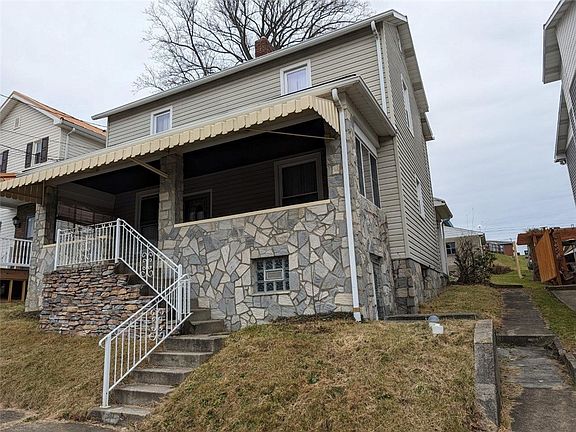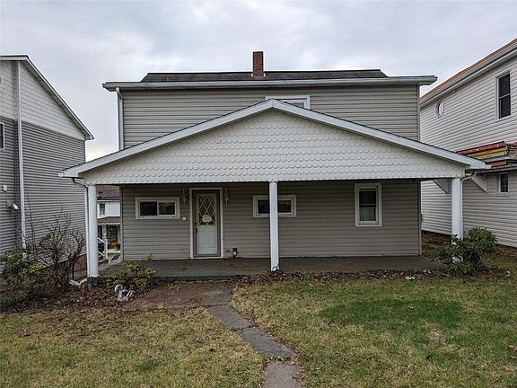 Two-story home with front and rear porches. Three bedrooms. Dining room, full basement, and detached garage.