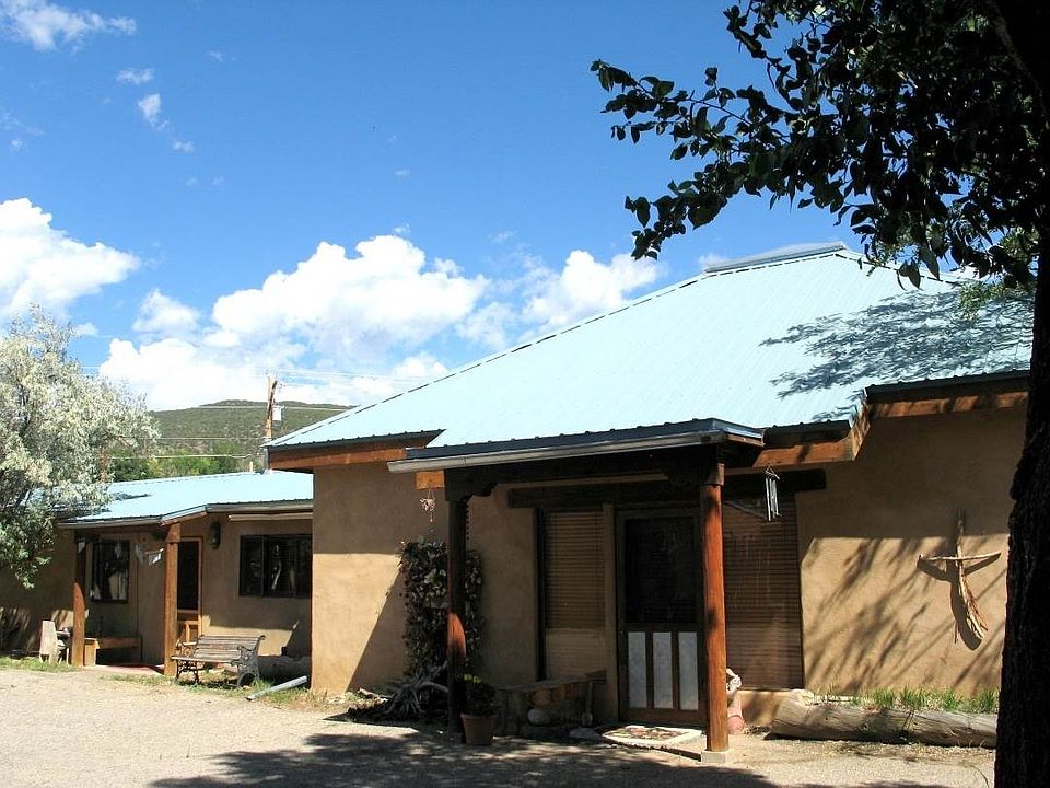 Taos Fusion Two homes on .86 acres! This unique in-town property, 1 mile from the Plaza, in a pastoral, private setting, provides many options, a house and guest house, a family compound, live/work spaces, rent one or both. 2BR/2BA, 1,450 sq ft main house and spacious 1BR/1BA, 2,028 sq ft guesthouse. Mountain views, fruit trees, patios, a free standing portal and hot tub deck enhance the outdoor living areas. Water rights, well, community water a plus. Two storage sheds. Create, garden, live/work, entertain. This sweet place is a MUST SEE! Price reduced. Owner/Agent