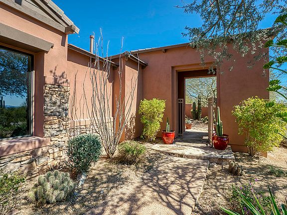 Beautifully upgraded Tapadero in the DC Ranch Country Club. Two amazing courtyardswith mountainviews, city lights, double-side fireplace, built in BBQ, surround sound, tranquil fountain best exposures to enjoy the home year round. When you enter the front door the home is open and airy with mountain views, Living Room with fireplace, Formal Dining Room, stunning Rotunda, Family Roomwith fireplace, gourmet Kitchen with granite, Dacor oven, Sub-zero Fridge, wine cooler, 2 other bedrooms with upgraded carpet with Jack-n-Jill bathroom. Large Master bedroom with views to the mountains, private access to the back courtyard, luxury Master bath attached with oversized walk-in closet. This lovely home has the updated automated Crestron house system, all rooms have access to the outside Courtyards for expanded living in and out. Nothing was missed!