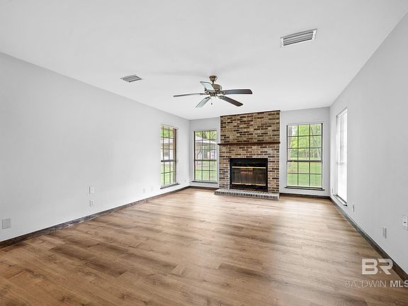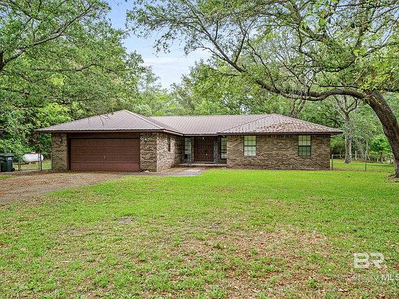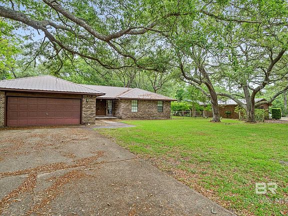 Large .83 acre lot, fenced in, gorgeous oaks, just one block from Perdido Bay in Lillian! This 3 BR/2 BA brick home features a metal roof(installed 2016 or 2017) and whole house generator(installed May 2021). New AC (installed July 2023)! New paint throughout and new vinyl flooring in majority of the home. No carpet! This home is located just one block from the bay in Emanuel Heights subdivision, which features deeded community bay access with a private boat ramp and pier(located at the east end of Bayview Drive). Plenty of storage with an attached 2 car garage, outdoor workshop wired with electrical and window unit, and additional storage building. There is also a septic tank hookup for an RV in the driveway and a concrete pad behind the home. Indoors, this home features 3 bedrooms, 2 baths, a kitchen, separate dining room, and a large great room with a wood burning fireplace. This home is move in ready- the refrigerator and washer/dryer are included in the sale. Come see this beautiful and affordable piece of paradise before it's gone! Buyer to verify all information during due diligence.