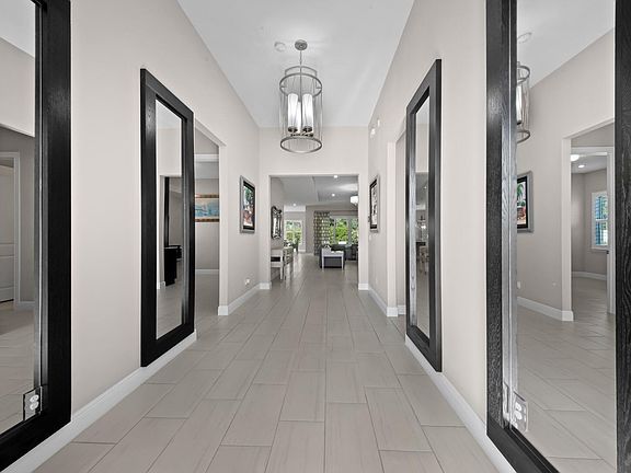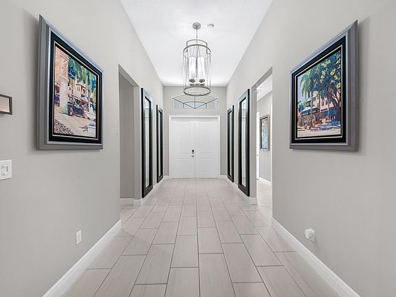 Welcome to this exquisite 4-bedroom, 3.5-bathroom single-story home, designed to impress with every detail. Nestled on a private lot backing to a serene preserve with no rear neighbors, this residence offers the ultimate in privacy, comfort, and contemporary luxury. Upon entering the inviting foyer, you'll be captivated by the open floorplan featuring neutral flooring, coffered ceilings, and custom lighting. The home's smart features include a Ring system and advanced smart home technology. Impact windows, a whole-house Generac generator, and a water softener provide security and convenience. The dream kitchen is a culinary masterpiece with classic white cabinetry, a tiled backsplash, stainless steel appliances, a wall oven, a walk-in pantry, pendant lighting, and a snack bar. The primary suite is a true retreat, highlighted by an accent wall, custom dual closets, and a spa-inspired en suite bathroom. Enjoy double sinks with quartz counters, a soaking tub, and a walk-in shower. Three additional bedrooms and 3.5 beautifully appointed baths offer ample space for family and guests.