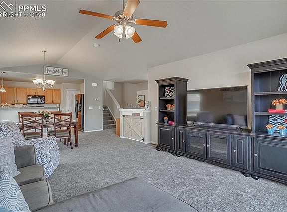 Welcome to this fabulous 4-level floor plan which has five bedrooms (three on the upper level) four baths and a tandem three car garage with plenty of room for everyone. This superb property is in the Metropolitan Club Subdivision. Awesome neighborhood in Peyton that neighbors Woodmen Hills and Meridian Ranch! This home is Journey's popular Kentucky model. Once you enter the home, the first floor features new carpeting, a formal dining room, living room, and a one-of-a-kind kitchen with many cabinets and a pantry. The Kitchen is open and a great space for either entertaining or enjoying time with the family while preparing your favorite meals as it overlooks the large family room and has a massive breakfast bar. All appliances stay! The upper portion of the home has three bedrooms including a beautiful master retreat w/ attached bath and walk-in closet. Lower level family room is spacious and can be very versatile with the walk-out to the backyard makes a game/play area for the kids; possibilities are endless! This level has a powder room and a nice sized laundry room. Your backyard has a 6-foot privacy fence and dog run, with still plenty of yard for the family to enjoy; ideal yard as it has a drive-through gate and backs up to open space! The basement level has two bedrooms, both rooms are spacious and perfect for the finishing touches to this home. Just minutes away from everything, Peterson AFB, Schriever AFB, shopping, dining and amenities. The HOA covers trash and management. Enjoy the use of TWO recreation centers this community has with your monthly HOA/Metro District Fees that include indoor and outdoor pools, two fitness centers along with community activities. District 49 schools! Don't miss your opportunity to own this home in a wonderful community.
