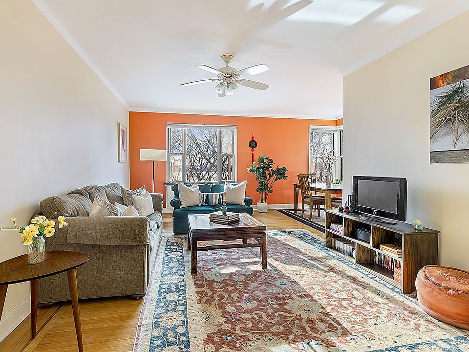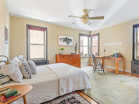 This oversized 2 bedroom, 2 bathroom corner apartment in an impeccably maintained pre-war Shore Road coop is a rare find, offering a sprawling 1300 sq ft layout coupled with beautiful seasonal waterfront views — watch ships pass through the Harbor and beneath the Verrazano Narrows Bridge from fall to spring, then enjoy a lush, green canopy all summer.