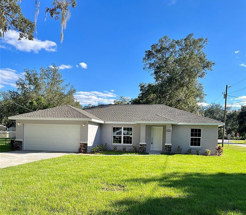 Reduced price.... Seller is contributing toward buyers closing costs for a signed contract before March 15th. New Construction home Ready to move in! Great Location......Property walking distance to the Veterans Hospital~The Villages. NO Association, NO 55+ community, NO flood zone, NO CDD assessments, NO restriction at ALL. Nestled on a CORNER .30 ACRE Prime LOT, 5 minutes to the Villages. Excellent to enjoy great restaurants, championship golf courses, 3 town square and more. Luxurious modern ST Michael model with over 2,090 sqft total. Welcoming you into a spacious living room with open concept area perfect to entertain. Elegant kitchen designed with granite countertops, high wood cabinets/easy closed system and crown molding. A large multi functional island surrounded with door Cabinets & drawers, electrical outlets for your baking needs, extra food preparing area and plenty of bar seating perfect gathering spot for family members. Stainless steel double bowl apron kitchen sink. Whirlpool appliances, with microwave above range. A spacious inside laundry room with cabinets, Washer and Dryer included. Cozy master suite with a walk in closet, beautiful master bathroom with tiled walk in shower, glass door, granite countertops, plenty wood cabinets, hers/his faucets & wall cabinet with mirror door enhancing an essential & convenience storage space for medicines,makeup and more. 2 guest rooms with plenty natural lights and next to a luxury bathroom with steel tub, tile shower, granite countertop, wood cabinet & linen closet. Car Garage with access to the patio, Garage door opener, proxy treated floor, concrete side to side step to guide and prevent the car to damage walls and garage side door. A relax private patio calling outdoor activities with enough space to add a pool. Excellent corner lot giving more yard space for a RV extra parking, convenience for a riding lawnmower and more privacy. Uncountable upgrades consisting efficiency windows, Marble window sills, Lighting fixtures/Ceiling fans, extra electrical outlets, wired alarm system, A/C unit inside the laundry room, Nice garden and lot sodded completely, a beautiful curb-appeal with modern color, decorated Stones and more. Builder Warranty. Don't miss this great opportunity!!
