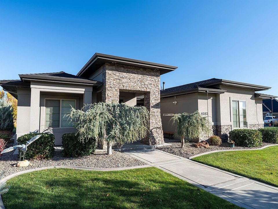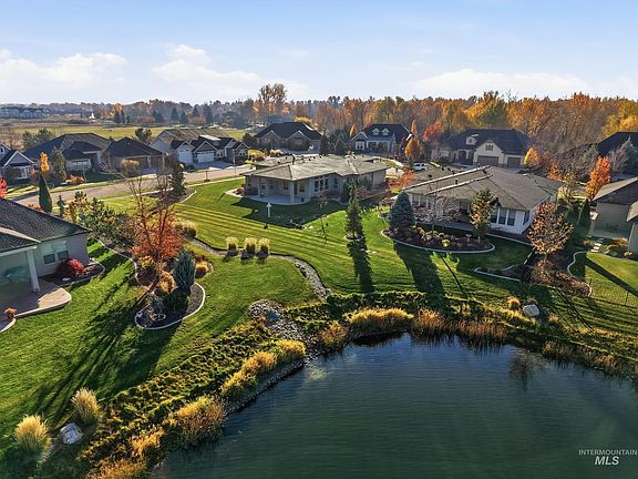 Elegant single-level living in the coveted Preserve at Heron River! Surrounded by beautifully manicured landscaping, tranquil ponds with graceful fountains, and tree-lined walking paths, this home captures the serene charm of Idaho living. This stunning 3-bedroom, 2.5-bath home (+ large home office) offers refined comfort and thoughtful design throughout. The open floor plan showcases hardwood floors, and a bright, inviting great room centered around a cozy gas fireplace. The gourmet kitchen is a chef’s dream - featuring quartz countertops, a 6-burner Thermador gas cooktop, Bosch oven with microwave, and a custom walk-in pantry with abundant storage. The spacious primary suite offers a spa-inspired retreat with dual vanities, a soaking tub, and a large walk-in closet. Enjoy Idaho’s beauty year-round from your fully covered patio overlooking tranquil water views - an ideal setting for morning sunrise or sunset gatherings. The oversized four-car garage provides ample space for vehicles, hobbies, or storage. Residents of Heron River enjoy exclusive access to resort-style amenities: a community pool and clubhouse, pickleball, tennis, and basketball courts, ponds, high-speed fiber optic internet, and scenic walking paths that connect to the Star Riverwalk Park. Discover the perfect blend of elegance, comfort, and community - right here in The Preserve at Heron River. BTVAI