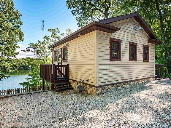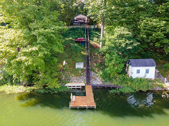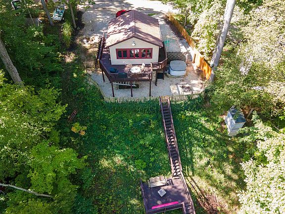 Welcome to Lake Papakeechie Selling turn-key This gorgeous 2 bedroom 1.5 bath cabin is steps away from the lake and located across the street from a 3000 acre nature reserve Gorgeous natural wood accents and hardwood flooring can be found throughout this open concept home. The living room features a stone fireplace and plenty of natural light. A well appointed kitchen boasts vaulted ceilings, updated appliances, kitchen island, and built in desk. An updated 1/2 bath completes the main level. A spiral staircase leads you to the lower level which hosts a large primary bedroom ensuite with stone fireplace. A built in closet, stackable laundry set, and what could be a second bedroom complete the lower level. Step out on the deck for gorgeous lake views Enjoy the lake life during the day and relax in the hot tub at night Perfect for year round living, vacation home, or a as a vacation rental this home has the perfect location and lots of parking