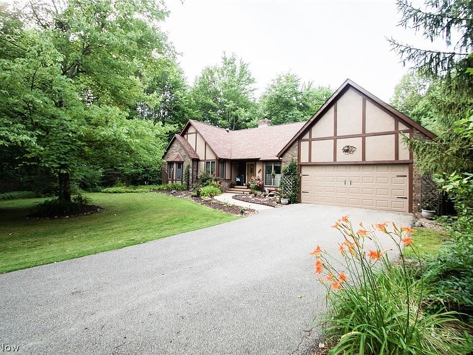 Driving through a canopy of trees opens up to this perfectly situated, meticulously maintained 3-bedroom Ranch on 5 wooded acres. The home features: open floor plan, vaulted ceiling with exposed beams, a centerpiece creek stone fireplace which has one of the two wood burning stoves, large laundry area on the first floor. The eat-in kitchen includes breakfast bar, stainless steel appliances and granite countertops. A fully finished walk out basement adds a very large amount of finished living space which now has gym, bar and entertainment area and a recreation room. Enjoy being Surrounded by nature and with privacy on the deck, patio or under the pergola. This one is a rare opportunity and a must see.