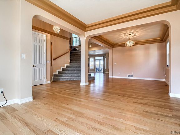 Vast Mountain Views from this smashing, semi-custom home with a professionally finished custom covered full length deck w/walk-out basement! Location is ideal, on a cul-de-sac & backs to a huge greenbelt, walking trails & close to Chatfield! Main level features sprawling hardwoods that flow throughout the main level, formal sitting area, formal dining, family room with gas log fireplace & kitchen. The kitchen is the heart of the home. Gather round the large island or space for a large table, tons of cupboards & counter space, walk-in pantry & all appliances. Upstairs features Master suite with double walk-ins, large 5-piece w/corner jetted soaking tub, slightly vaulted ceiling give it a touch of class. There are 3 beds w/one having it's own on-suite bath as well as another full bath in the main hall. The basement walkout is finished with surround sound, tons of light, full wet bar w/mini fridge, 5th bedroom, Den/Office/Bonus or 6th bedroom, ¾ bath and lower patio. The north facing, oversized covered deck with a relaxing hot tub allows you to enjoy the outdoors from glorious sunrises to colorful sunsets. Sellers are completing some updates: - tiling the master bathroom next week starting on Monday July 13, 2020 - Upstairs being painted & Basement blue bedroom starts Friday July 10, 2020
