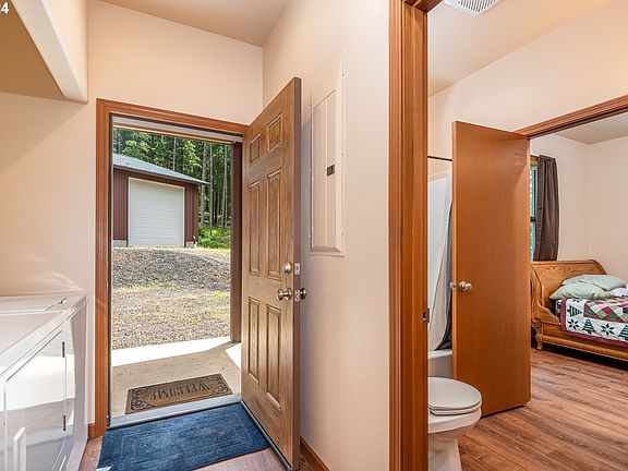 Embrace the privacy of 92855 Templeton Rd. A very quiet and gated property offering both comfort and practicality. This 2-bedroom, 2-bathroom home spans 1,200 sq. ft. and features a sturdy metal roof. Inside, you'll find granite counters, LVP flooring, 9-foot ceilings, and all stainless steel appliances included. Enjoy the warmth of a wood-burning fireplace in the home, garage, and shop, as well as the comfort of ductless heating and air-conditioning.The property includes a spacious 3000 sq ft shop which has 2 bedrooms, 1 bathroom, 200A service, an air compressor with stub outs, and three large bay doors. The shop is also equipped with a wood-burning fireplace and a generator hookup. Additional features include a 19 x 21 garage, a 6-stall horse barn, and a second 11 x 15 shop for smaller projects or extra storage.Equipped with super high-speed Century Link fiber internet, this property offers a serene environment where deer and turkey frequently pass through. With a total of four outbuildings, it caters to a variety of hobbies and practical uses.