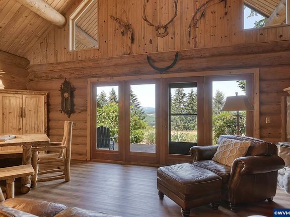 Spectacular custom log cabin on 6.41 acres! One-of-a-kind home is situated at the highest point to take in the best views! 1500 Sqft shop with power, cement floors & a bonus space that could convert to an apartment. New metal roof! Potential for merchantable timber! Step inside and you are greeted by an open concept living space w vaulted ceilings, natural wood finishes & a wall of windows. Stone surround woodstove! Remodeled kitchen. Butler pantry Wrap around porch. Enchanting views and abundant wildlife!