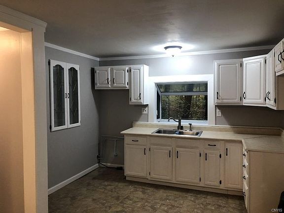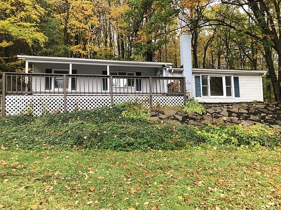 2.8 acres with a nice secluded 2 bedroom country home nestled in a mix of hardwoods in Clarksville NY. The house has recently had new carpet and vinyl floors installed and it has been painted throughout.  The house includes a spacious kitchen, living room, dining room, mudroom, and a sunroom with views of the spring-fed stocked pond.  There are washer and dryer hook ups, coal fire view stove, and a newer high efficiency propane forced air furnace.  And there is a large front porch. The driveway splits the property.  There is a mobile home site on the other side of the driveway from the house.  This mobile home site would make a great site for a cabin or a camper for friends and family. Quiet area yet close to the Village of Cuba for all the essentials.