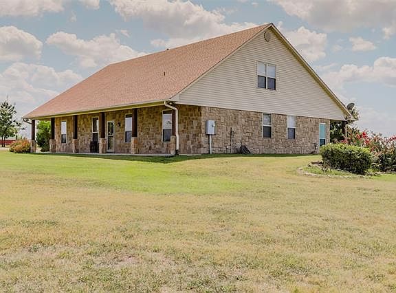 WELCOME HOME to this beautiful stone country style home that sits on a STUNNING 5 acre tract with views of true ROLLING HILLS! This home offers 4 bedrooms, 3 full baths. Master retreat and second master bedroom with ensuite downstairs, two additional bedrooms separated by a game room and a bathroom upstairs and lots of storage. Open floor plan, gorgeous stone fireplace, separate dining area open to the kitchen and a separate sunroom or additional dining area. Detached garage with additional room and HVAC that can be used as an office, or home school room! Enjoy the beautiful views at anytime of the day from either of the large front or back porches. 2 horse stalls with tac room in the back. Bring your horses!
