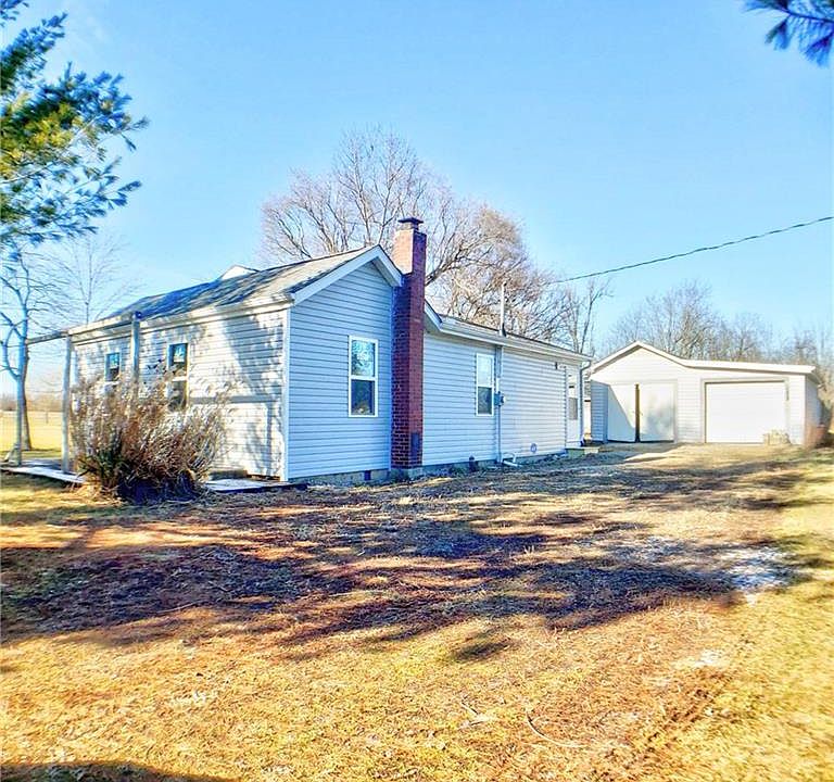 Recently updated 1-story country home with 3 bedrooms, 2 full baths plus a 2-car detached garage on 2.3 partially wooded acres. Updates include new windows, new siding, new roof, new water heater and new sliding glass patio door. The home features an open layout with open living room, dining room and kitchen. The kitchen includes nice oak cabinets, dishwasher and gas range. The home also features a laundry room, master suite with full bath & 4' shower, full hall bath and partial unfinished basement. The detached garage has 2 separate bays, perfect for your car and a large workshop, plus a rear enclosed lean-to. Other features include a rear concrete patio, chicken house with fencing, large yard with garden area, small seasonal pond, and some woods at the rear of the property. Nice rural location with Spectrum high speed Internet. Some trim and other minor finish work needed. This property has been well-maintained and in good, sound condition. Call today for full details.