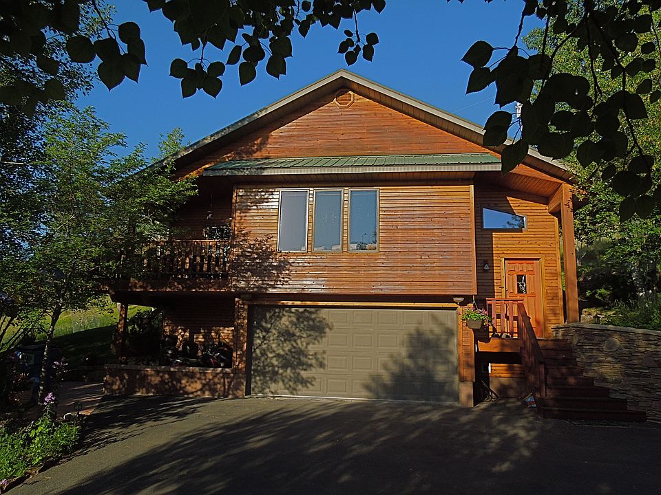 Craftsman style cedar sided home with picturesque views. Vaulted pine ceilings with hardwood, tile, and carpet floors. Striking new fireplace and granite kitchen counter top. Lovely Anderson french doors and windows. Open kitchen, dining & great/living room. 2 spacious bedrooms. 1 den/multipurpose room. 2 full baths. Laundry room. Attached garage with storage room. Beautifully landscaped with an abundance of trees!