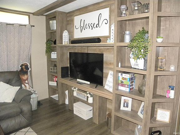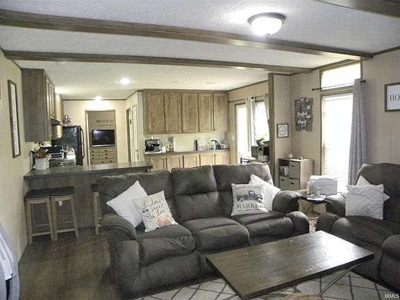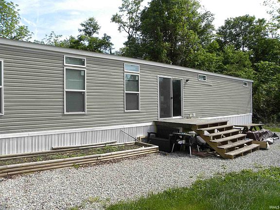 Great Investment Opportunity. Newer (2016) Single wide mobile home on 5.24 acres of land. The home offered for sale is a beautiful Clayton Single Wide Mobile Home measuring 16 X 76. The home has 3 BR, and 2 full Baths, with an open concept living dining and kitchen area. The home features a huge living room with built in shelving and entertainment center, the kitchen has nice appliances, and an apron front sink. The home has a split bedroom floor plan, the owner suite has a big walk in closet with an en-suit bath with both a shower and soaking tub. The home has a nice open front porch, a small deck out back and a fire pit. The property is nicely landscaped with some open and wooded land. There are 3 additional Mobile Home Sites on the property each with City Water and its own Septic System. The lots sit back off the road a bit with easy access to Hwy 46 and Easy Commute to either Terre Haute or Bloomington.