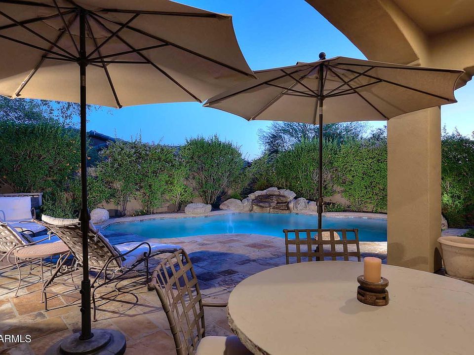 A beautifully appointed single level home in the fabulous gated community of DC Ranch. No interior steps,very desirable floor plan with separate master suite. Enjoy the courtyard fountain, outdoor fireplace & built-in gas BBQ, pebbletec pool, flagstone patio on this lush oasis onNorth/South lot.DC Ranch Master plan includes 2 community centers,pickleball & tennis courts, fitness center, heated lap pool and other pools, basketball courts. A superb location minutes from top Scottsdale retail shopping, restaurants, top golf courses, top rated school options. Living in DC Ranch will allow you to fulfill your fitness, wellness, recreational needs. Walking paths, trails as well as upto 50 community social events scheduled yearly.Lovingly cared for, see Doc section for abundant owner upgrades