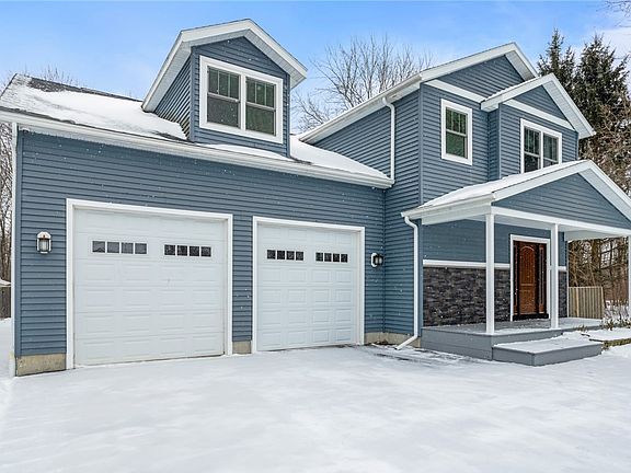 Welcome to this stunning 4-bedroom, 2.5-bathroom home that presents an open-concept layout, ideal for entertaining. Brand new granite countertops in the open kitchen with lots of cupboard space, which overlooks the living room and dining room. The 3-car garage with heat for the hobbyist or car enthusiast. Separate panel box in garage for RV. With almost an acre lot with privacy fence and includes a pet fence and above ground pool with trexs decking. Comfort, luxury, and endless possibilities await you on this property. LeRoy School district and village living and amenities.