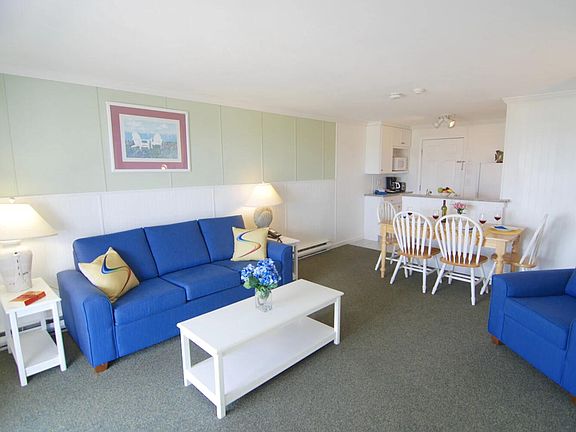 Own your very own piece of Provincetown, week 34 (Aug. 25-Sept. 1, 2024), at the Sandcastle Resort. This corner waterfront timeshare is located on the top floor with expansive views of Provincetown Harbor and Cape Cod Bay. Sit on your private deck, sip your coffee and take in the views. The unit sleeps 6 and features one en-suite bedroom with 2 queen beds with a double sleep sofa is in the living room. There is a fully equipped kitchenette with granite countertops and a 2nd full bathroom. The unit includes coffee maker, cable/satellite, flat screen TV, WIFI, full size refrigerator/freezer, microwave and more. Linens and towels are provided. The annual maintenance fee is currently $1,056.62. Resort amenities include a private sandy beach, indoor & outdoor pools, jacuzzi, tennis & basketball courts, fitness center, poolside grille, BBQ areas, and bicycle/kayak rentals. Assigned parking for 1 car. The Flex bus provides convenient access to the center of town. You can rent your week or list with the RCI network for trade. Know you will always have a week waiting for you in Provincetown. Don't let this one get away.