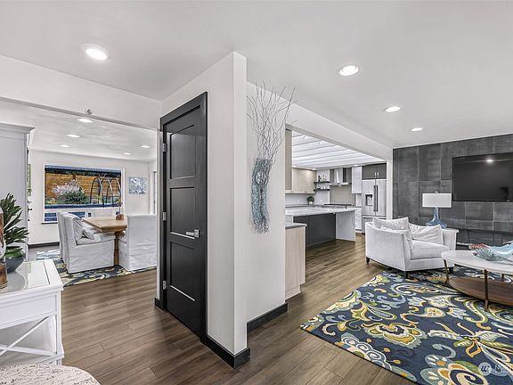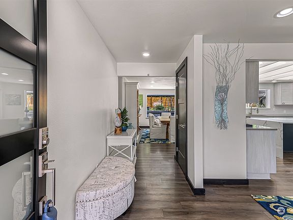 Fresh off the cover of a magazine this home shines w/classic modern NW style that is unmatched. An open concept kitchen will amaze w/the 10’ quartz waterfall island, coordinating, expansive quartz counters & cabinets, professional 6 burner range, top of line appliances & vast custom cabinetry. Vaulted ceilings w/exposed framing, showcase dining & living rooms w/built in, expansive fireplace & entertainment system. Large, spa quality baths & stunning primary suite. An expansive entertainer’s, partially covered patio paradise, w/ gazebo grill area, new hardscape, trellises, garden space, terraced lawns, & new privacy fence. ¼+ sunny acre w/newly landscaped & terraced front yard. Furniture is negotiable. Includes rapid home cooling system.