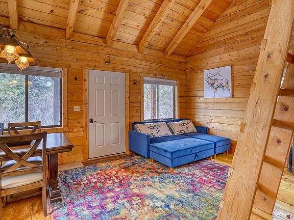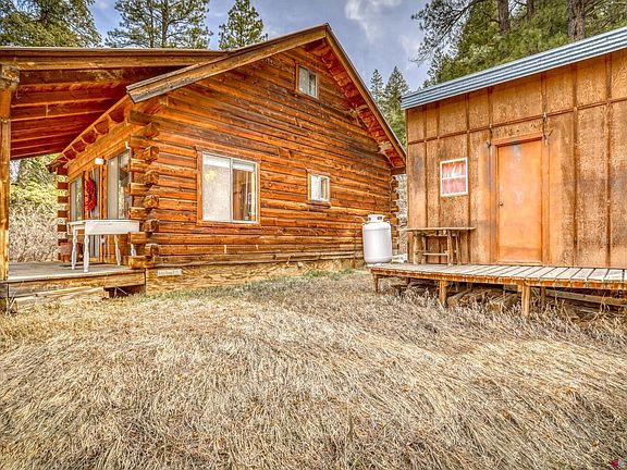 Rustic mountain log cabin, it's just what you've been looking for! 1 bedroom, 1 bath cabin with well, septic, electric, phone service and internet on 4 acres. Full kitchen with a stove/oven, new refrigerator and microwave. Dining area and open living room. Loft that is accessed with a ladder from the living room. There are 2 double beds in the loft. The main floor private bedroom has a king bed. All furniture and furnishings are new in 2021. New flooring in Kitchen and bathroom. The bathroom is fully remodeled. There is an outbuilding that is being used for storage but has 3 bunks in it. Would be great for a bunkhouse in the summer. This is an amazing opportunity to own the mountain cabin you have always dreamed of. only 10-15 minutes from Pagosa Springs and no HOA. Act now before it's gone!
