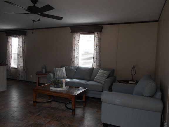 This home has 3 bedrooms 2 baths and 1,056 sqft. It has an open living room and kitchen. Kitchen is L shaped with lots of custom cabinets and counter space. There is also a huge island that seats 4-6 and all appliances included (fridge, stove/oven, dishwasher, and microwave). Master bedroom is large in size and has its own master bath with one piece tub/shower combo. At the other end of the home is two more nice sized bedrooms and another full bath. This home is a must see! And can be yours for $2044 down and estimated payments of $702 a month. Please call Misty or Melissa today at 877-642-0053 for more information or to schedule a viewing. *Financing offered through First Choice MH LLC (“First Choice”), NMLS #1241272. First Choice is a Licensed Mortgage Originator in the State of Indiana. Corporate Office: 600 W. 22nd Street, Suite 101, Oak Brook, IL 60523. Monthly payment based on purchase price $39,100, 5% down payment, 8.5% APR, 20Year Term. Payment includes estimate for taxes, title and insurance. All offers subject to credit approval by First Choice and approval through Four Leaf Properties for residency. Pricing is valid for 30 days from the date of this offer. Offer subject to site rent discount of $0 in 1 and 2. Thereafter site rent reverts to current market.