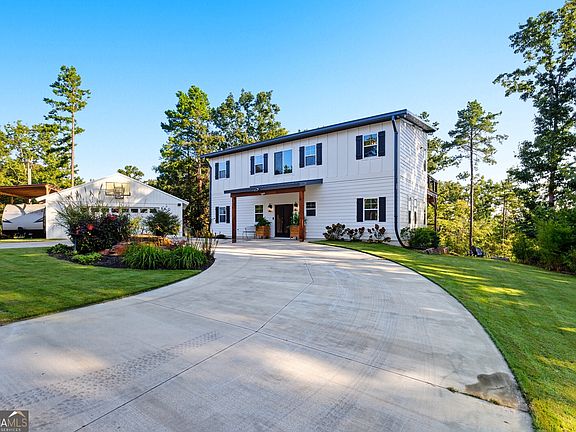 Custom-built in 2021, this sleek, high-performance home blends modern design with everyday comfort. Constructed with ThermaSteel panels beneath HardiePlank siding, it offers exceptional insulation, durability, and peace of mind-resistant to mold, termites, and even extreme weather. Designed to capture the lake and mountain views, the main living spaces and primary suite are upstairs, featuring large windows and an east-facing deck overlooking Lake Hartwell and the Blue Ridge Mountains. The kitchen includes butcher block countertops, stainless appliances, and a breakfast bar that flows into the open living area. The primary suite features dual closets, a spa-like bath, and a custom captain's bed with integrated storage. Downstairs, two bedrooms, a full bath, and a common area provide space for guests or a home office. High-end finishes, independent climate zones, and luxury vinyl plank flooring ensure comfort and style throughout. Outside, enjoy a detached garage/workshop, circular drive, and low-maintenance landscaping perfect for relaxing or entertaining. Located just minutes from Lake Hartwell, the Chattooga River, and nearby towns like Clarkesville, Clayton, and Clemson, this property offers energy efficiency, storm safety, and modern mountain living-all move-in ready.