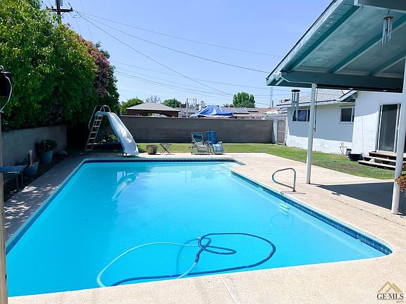 Beautiful North Bakersfield home featuring 3bd-3ba with possible 4th bedroom! Tons of space and tons of storage. Double sided brick fireplace. Large backyard with covered patio and sparking inground pool! This home is perfect for entertaining. Updated roof, windows, AC unit and new granite countertops in the kitchen. Located on a cul-de-sac street. Must see to appreciate. The possibilities are endless!