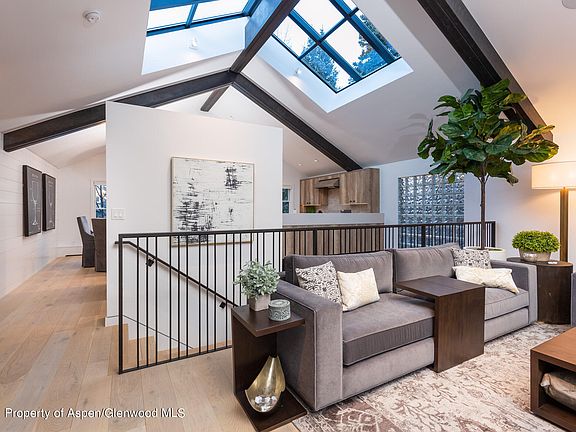 Incredible light and views from this stunning contemporary to the studs Aspen Core remodel. Expansive living area with vaulted ceilings, three bedrooms all with ensuite baths and an array of custom details including steel wrapped beams, railings and fireplaces, lap siding, unique accents and additional soundproofing. Fully equipped chef's kitchen opens to the living room to create an expansive livable floor plan. All new HVAC and air conditioning. Abundant storage for owner lock off. Just 2.5 blocks to the gondola. Offered furnished excluding some art and personal items.