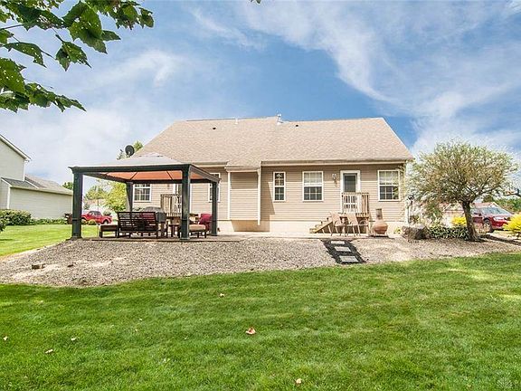 Beautiful 3 Bedroom/ 2.5 bath 2 story brick home in Eaton has 1900sf on lovely landscaped lot w/ creek in backyard. 2 story Open foyer w/ tile floor leads to the bright Dining Room. The kitchen has granite counters and large pantry plus is open to both Dining and Living rooms! The Living Room has cozy gas fireplace and vaulted ceiling. The first floor Master features walk in closet, vaulted ceiling and walk out to the lovely back patio. An attached bath enjoys double vanities, extra deep tub and separate shower. Upstairs you'll find two large Bedrooms, and a bonus room. Finished Basement makes a great rec room and also has plenty of storage. Ready for your family to move in!
