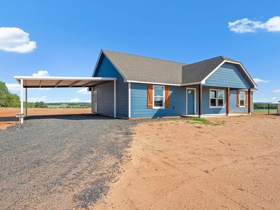ADORABLE NEW HOME ON 1.028 ACRES WITH A COUNTRY FEEL, IN A SMALL TOWN. OPEN LIVING CONCEPT WITH SPLIT BEDROOMS. EXTRA CLOSET AND STORAGE AREAS THOUGHOUT THE HOME. THE PRIMARY BEDROOM HAS A HUGE WALK IN CLOSET. THE KITCHEN HAS A SEPERATE SPICE CLOSET TO THE SIDE OF THE FRIDGE AREA. THE LAUNDRY ROOM HAS EXTRA ROOM AND IS ALSO A MUD ROOM. LOT HAS MARKER FLAGS ON THE BACK OF THE PROPERTY BACK FOR PROPERTY LINE. GRAVEL DRIVE AND A FEW OTHER THINGS TO BE DONE FOR COMPLETION