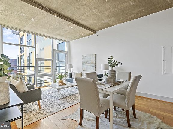 Welcome to the trendy Floridian! This modern 2 bed | 2 bath unit (with GARAGE PARKING!) spans over 1000 sqft of industrial style and design. Natural sunlight pours in through the large, westward facing wall-to-wall windows, a Juliet balcony and hardwood floors that contrast nicely with the treated concrete ceiling. Enjoy preparing meals in the gourmet kitchen, which features granite countertops, stainless-steel appliances, pantry and a bar perfect for entertaining. The primary suite shows off a generously-sized walk-in closet with custom shelving, ideal for all of your organizational needs, along with a sizable ensuite bathroom with both soaking tub and separate walk-in shower. NEW HVAC (2023). Washer/Dryer in unit. To top it off, this unit includes a private, assigned garage parking spot. The Floridian is a professionally managed building with concierge and a common rooftop equipped with BBQ grill stations and lounge seating. Pets are welcome here. Just two doors down from Whole Foods, steps to Metro (Green/Yellow Line), Capital Bike Share and the endless amenities of U Street, Shaw, and 14th Street!