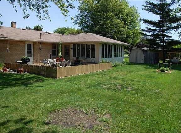 Three bedroom ranch with large living spaces. Large living room has original hardwoods and is open to dining area. The four season sun room is also spacious and carpeted. The kitchen includes all appliances and has great vintage feel. The master bedroom has hardwood floors and a large closet. Two other bedrooms, one of which has a large built in bookshelf, also have hardwoods and ample closet space. 3 bedrooms share a full bath with double vanity. Great patio, storage shed included. Virtual tour